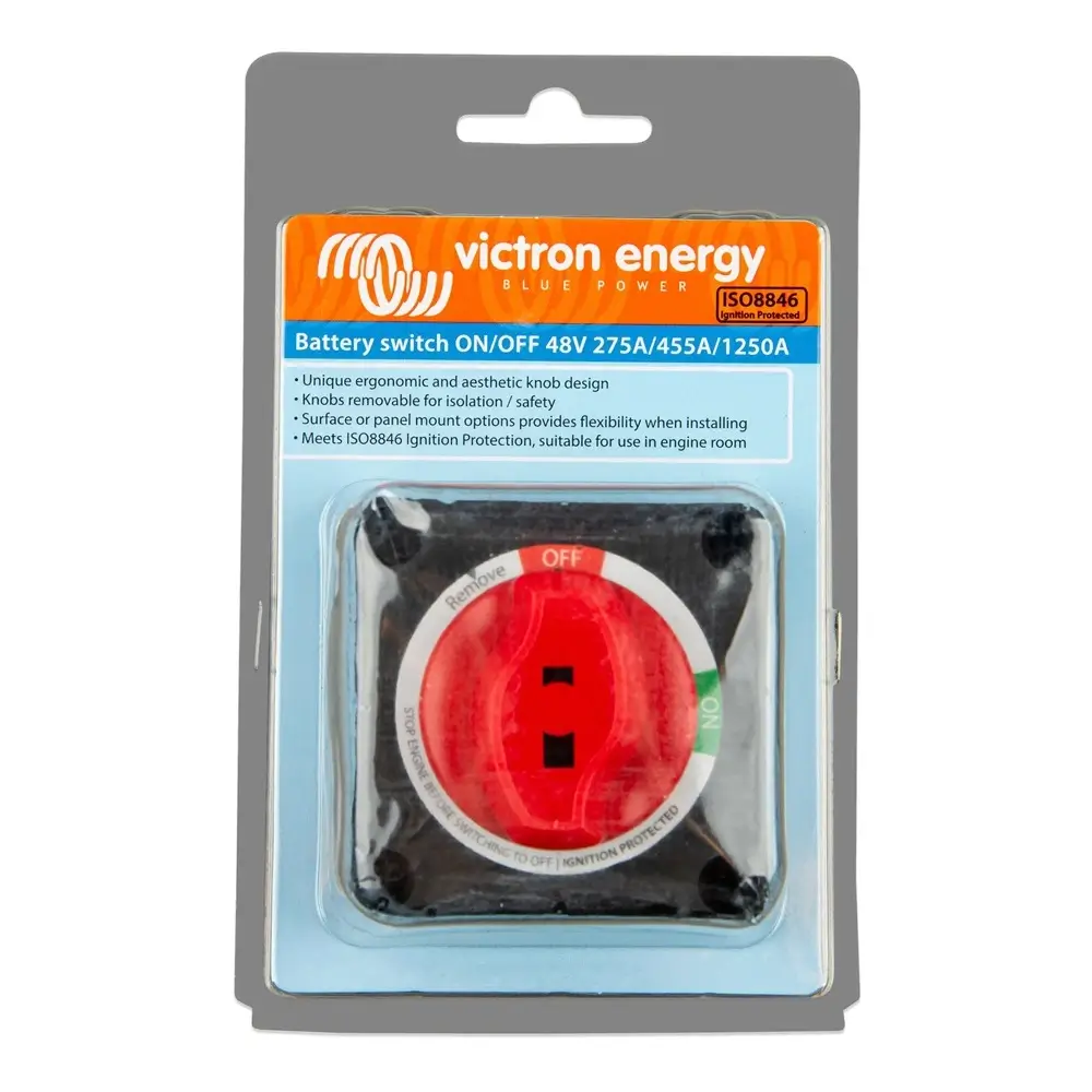 Ο Victron Energy Battery Switch On/Off 275A είναι ένας υψηλής ποιότητας διακόπτης απομόνωσης μπαταρίας, σχεδιασμένος για ασφαλή και αξιόπιστη διαχείριση ηλεκτρικών κυκλωμάτων σε σκάφη, τροχόσπιτα, φωτοβολταϊκά και βιομηχανικές εφαρμογές.